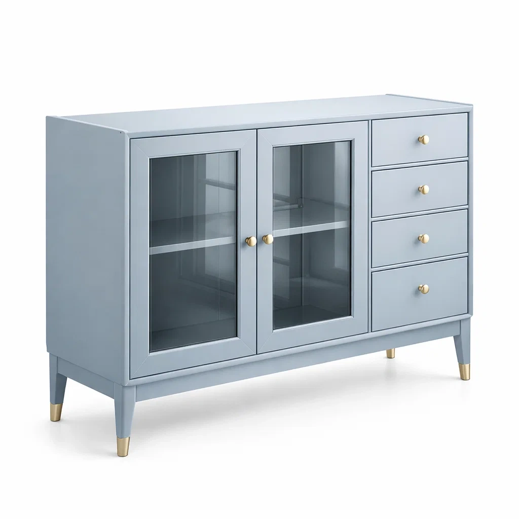 Buffet en bois MDF avec portes vitrées et tiroirs