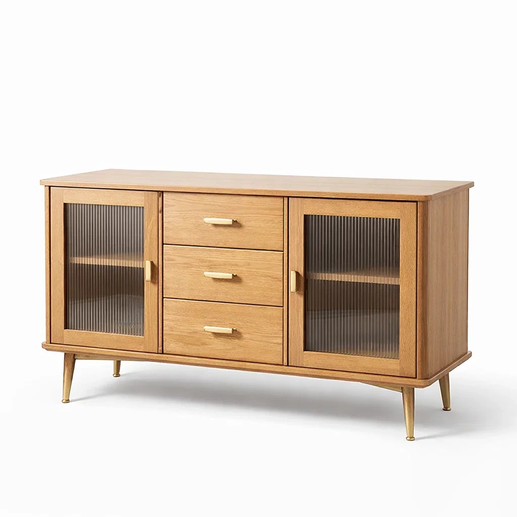 Buffet en bois avec portes en verre cannelé