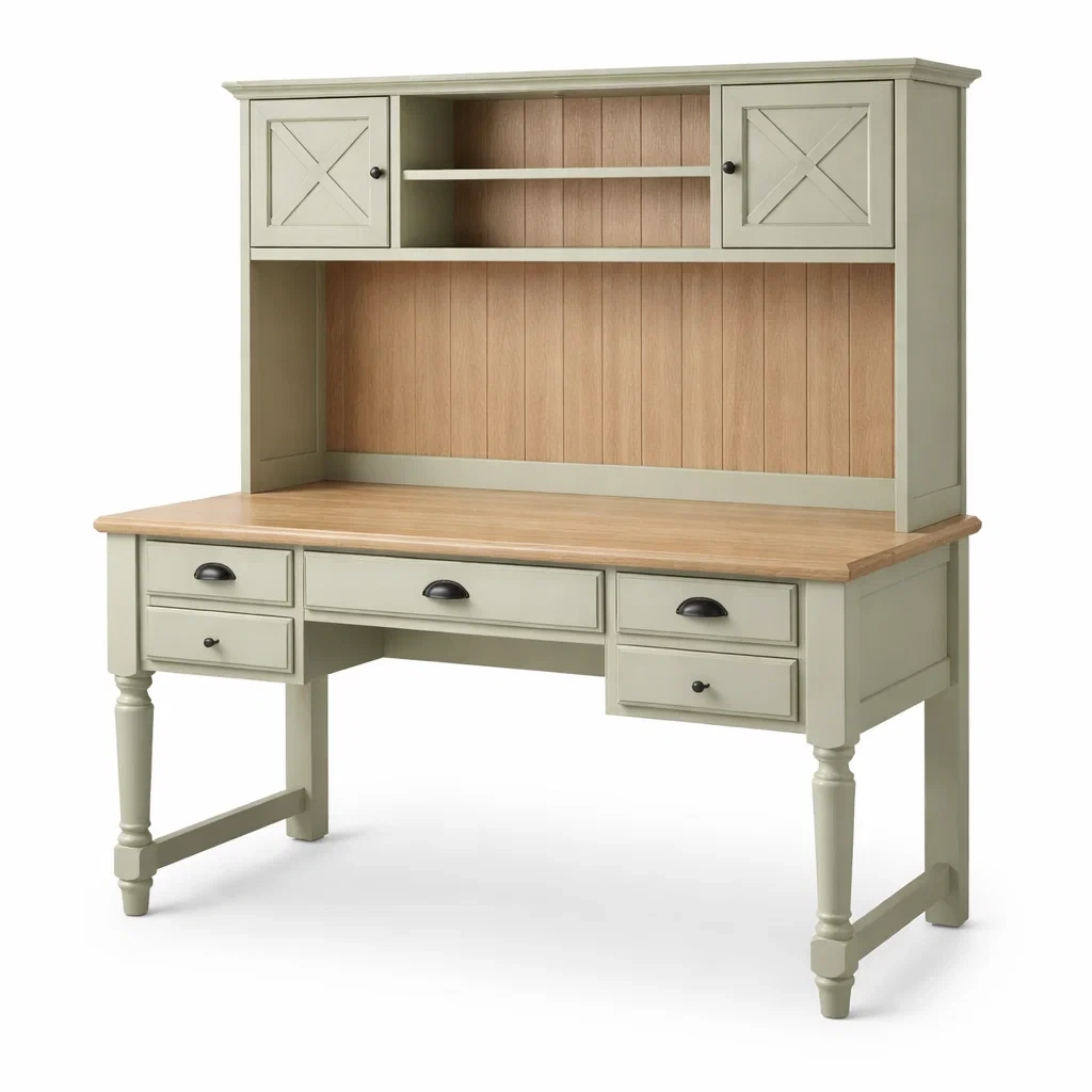 Bureau en bois et MDF vert avec rangements 170 x 120 x 60 cm