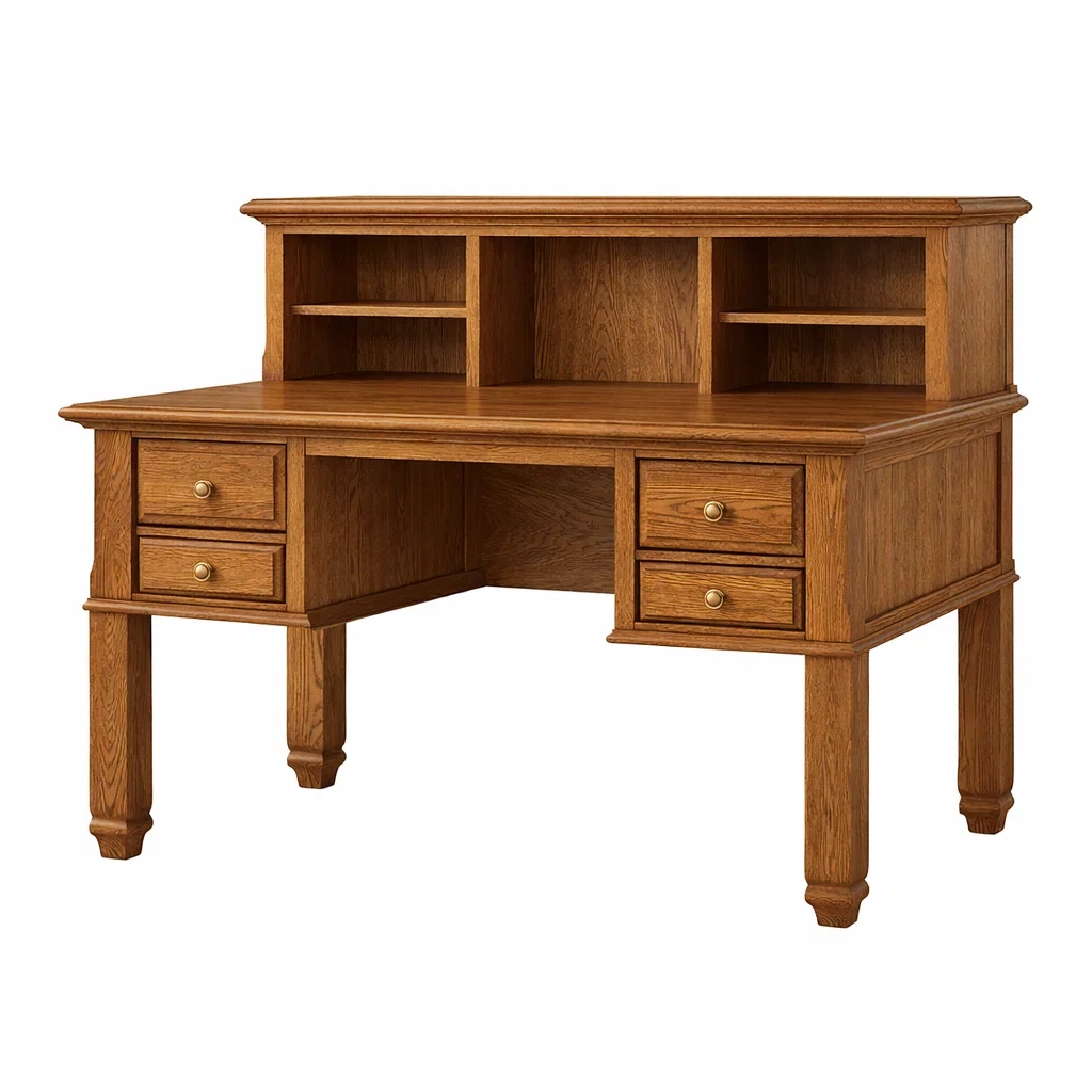 Bureau en chêne massif avec 4 tiroirs et rangements