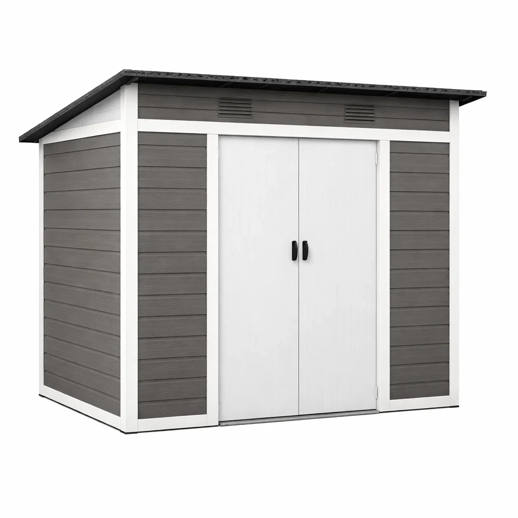 Abri de jardin en résine gris et blanc